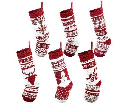 Set includes 6 large knit Christmas stockings (18 inches each)